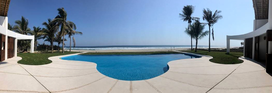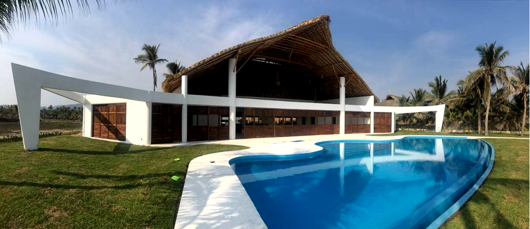 The back adjoins the Pacific Ocean and the front faces the condominium known as Los Naranjos, close to the Colotepec lake.